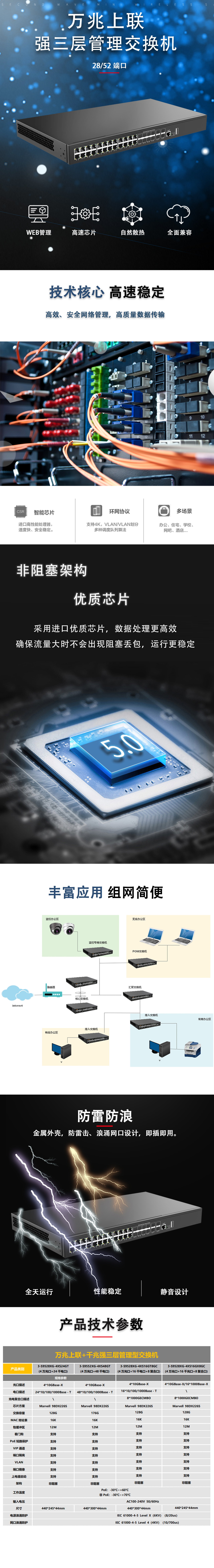 萬兆上聯強三層管理型POE商業交換機